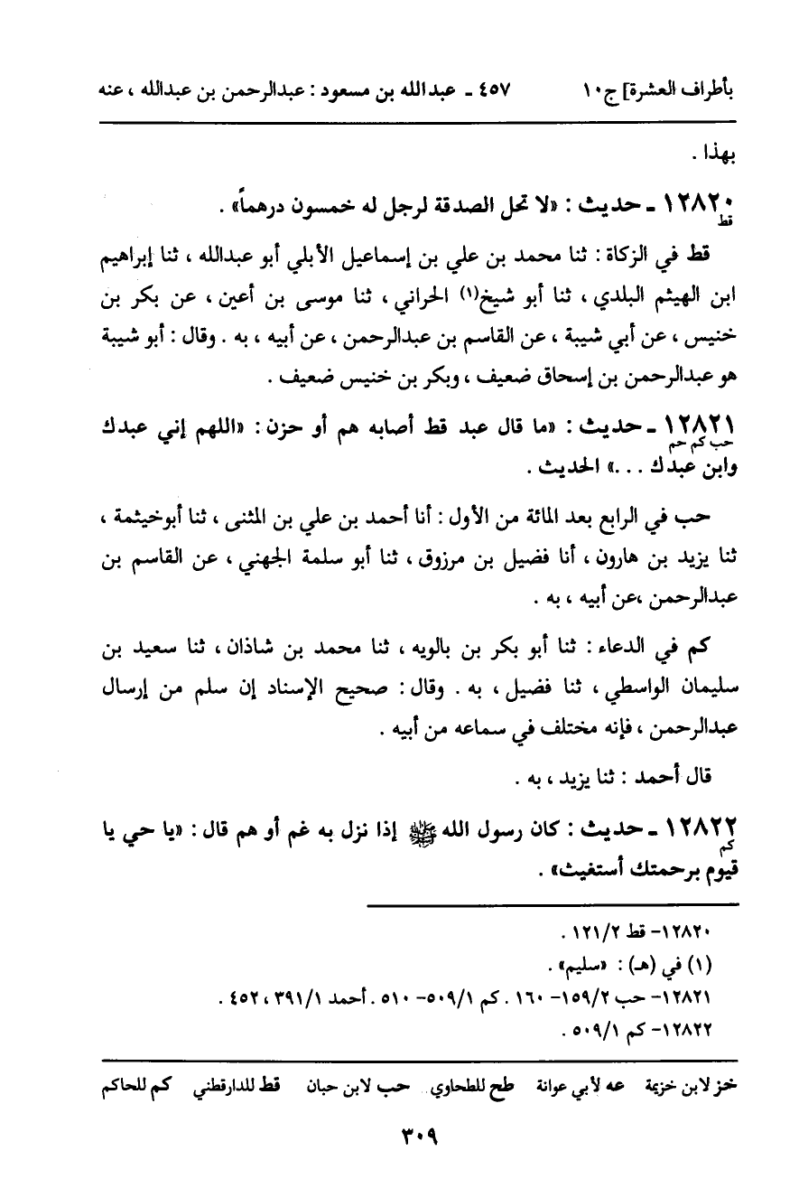 12821 - حديث (حب كم حم) : " ما قال عبد قط أصابه هم أو حزن: " اللهم إني عبدك وابن عبدك. . . " الحديث.