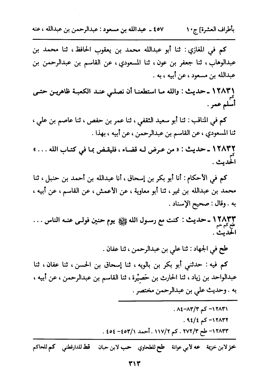 12833 - حديث (طح كم حم) : " كنت مع رسول الله صلى الله عليه وسلم يوم حنين فولى عنه الناس. . " الحديث.