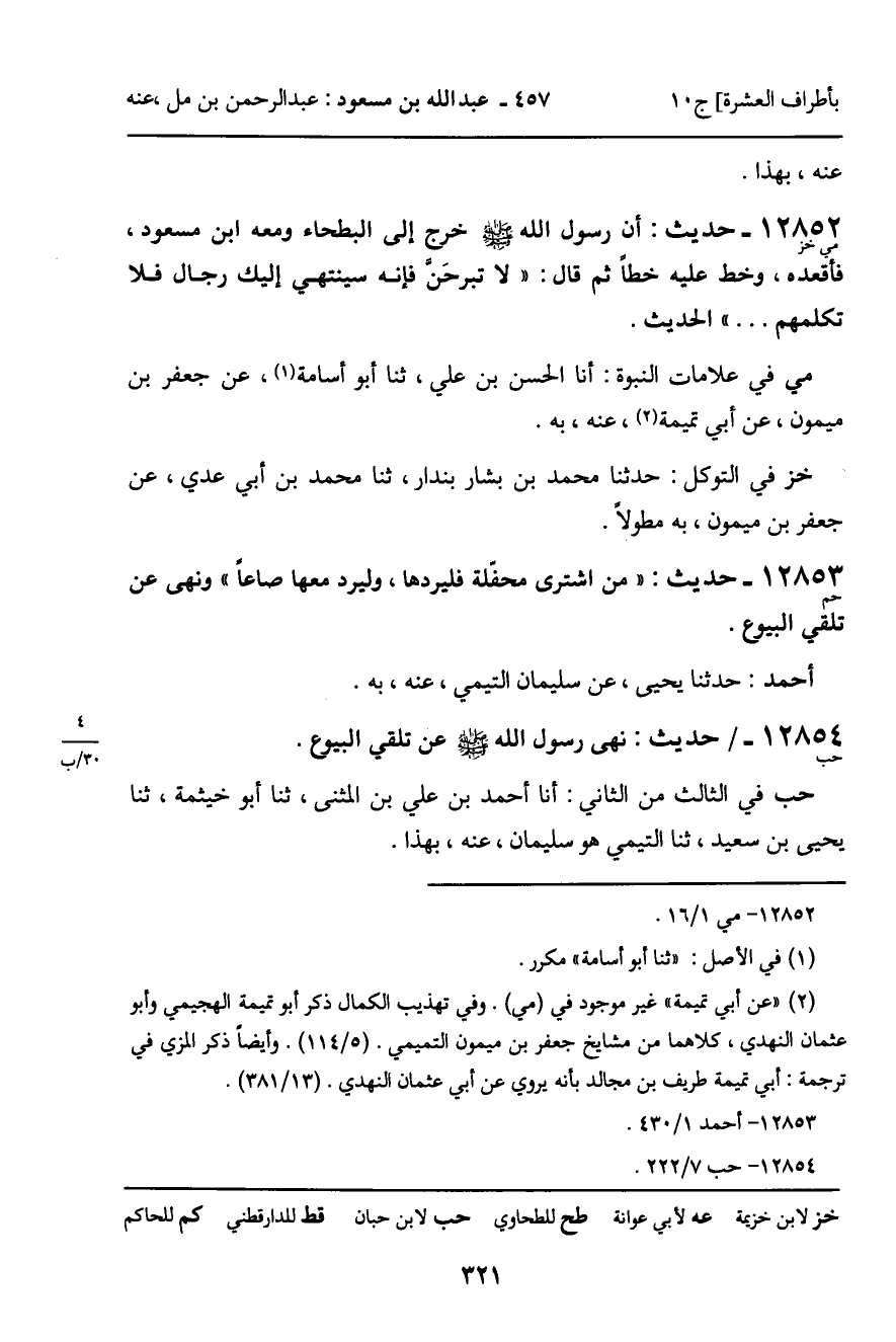 12854 - حديث (حب) : " نهى رسول الله صلى الله عليه وسلم عن تلقي البيوع ".