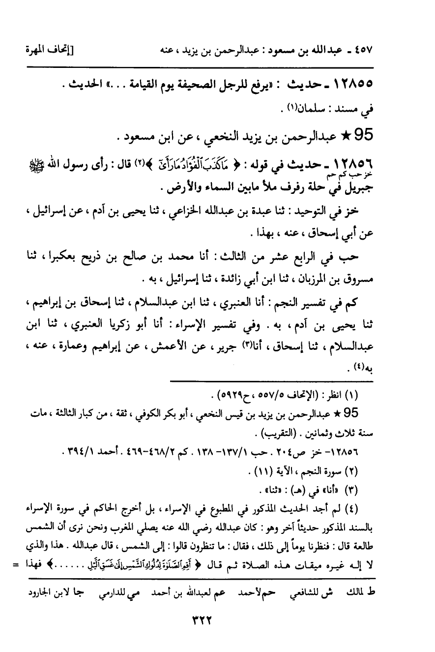كم في تفسير النجم: أنا العنبري، ثنا ابن عبد السلام، ثنا إٍسحاق بن إبراهيم، ثنا يحيى بن آدم، به. وفي تفسير الإسراء: أنا أبو زكريا العنبري، ثنا ابن عبد السلام، ثنا إسحاق، أنا جرير، عن الأعمش، عن إبراهيم وعمارة، عنه، به.