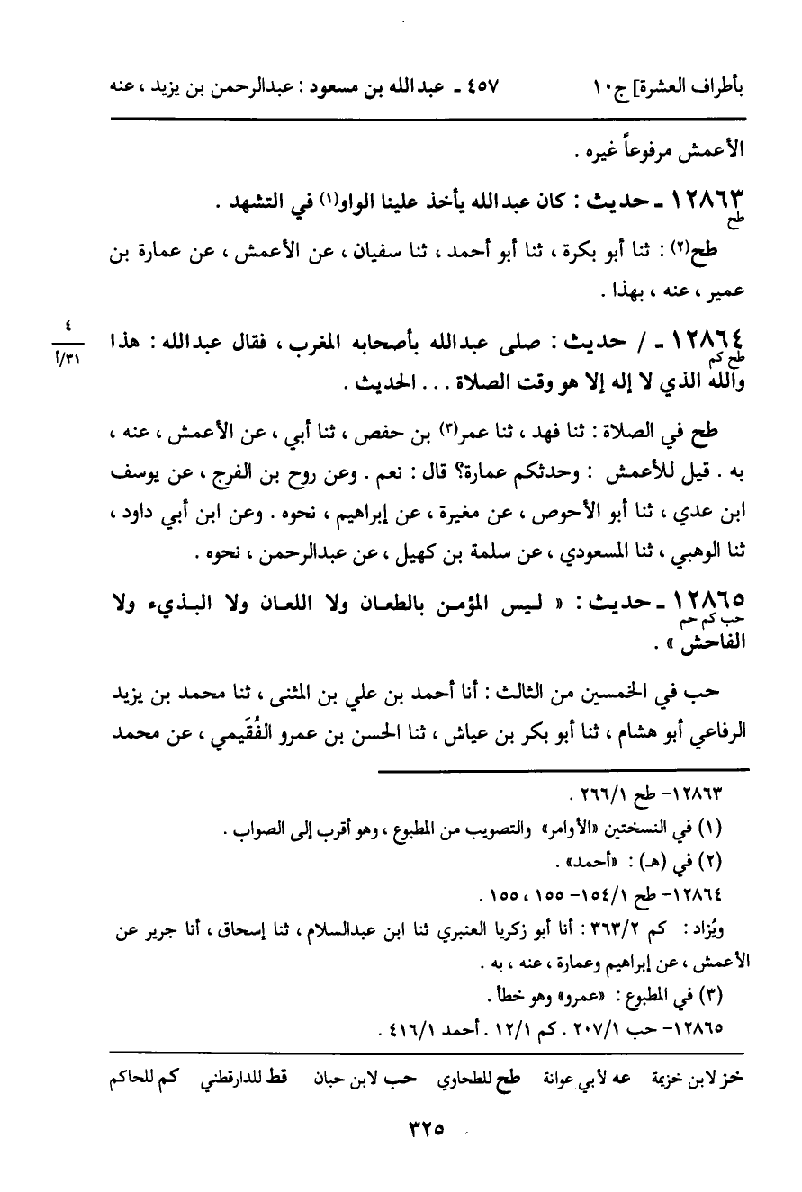 12863 - حديث (طح) : " كان عبد الله يأخذ علينا الواو في التشهد ".