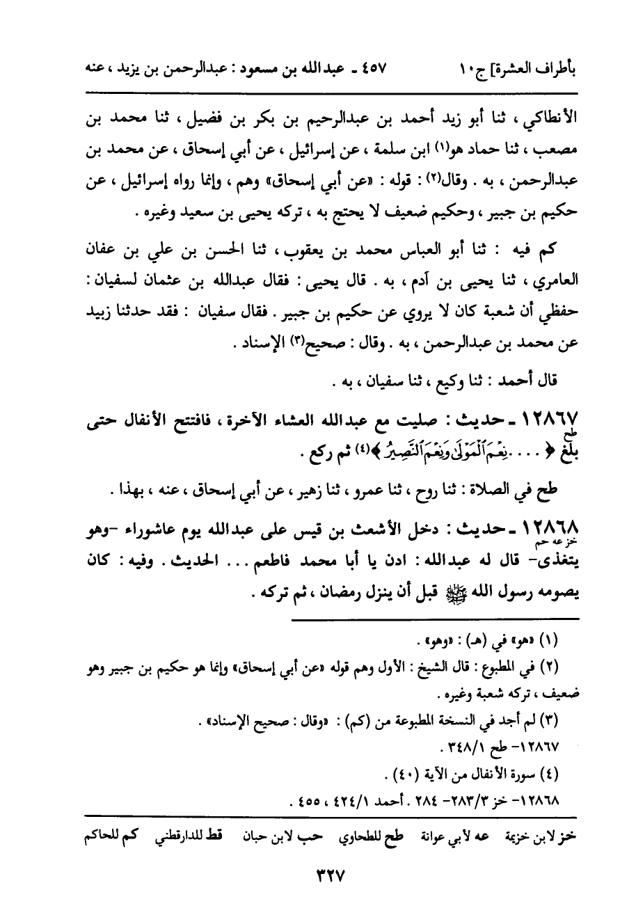 12867 - حديث (طح) : " صليت مع عبد الله العشاء الآخرة، فافتتح الأنفال حتى بلغ نِعْمَ الْمَوْلَى وَنِعْمَ النَّصِيرُ [سورة: الأنفال، آية 40] ثم ركع ".