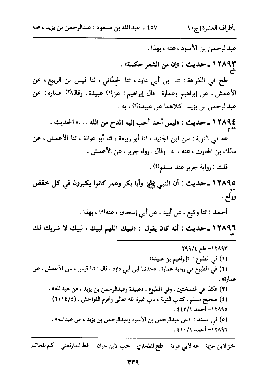 12896 - حديث (حم) : أنه كان يقول: " لبيك اللهم لبيك، لبيك لا شريك لك