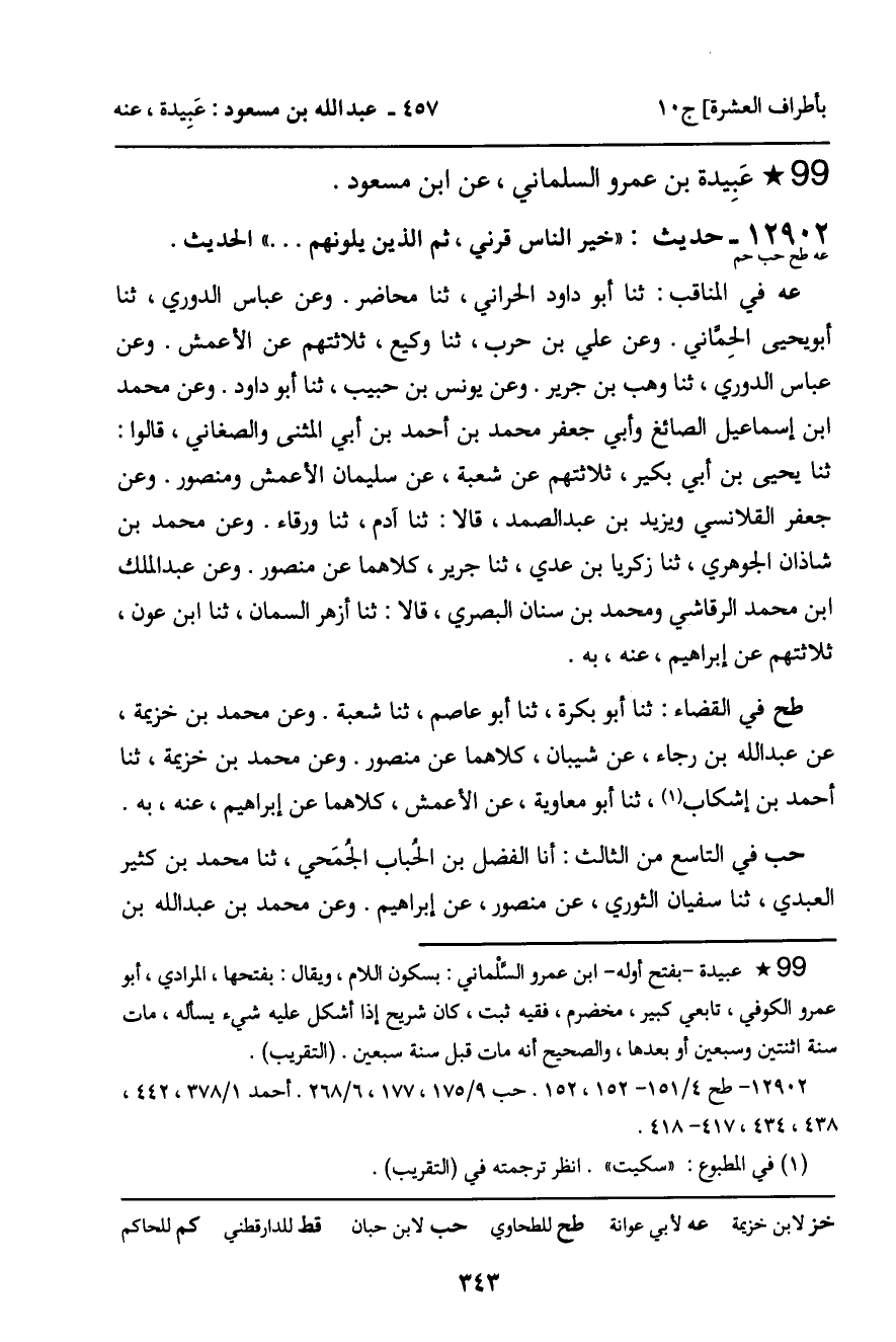 12902 - حديث (عه طح حب حم) : " خير الناس قرني، ثم الذين يلونهم. . . " الحديث.