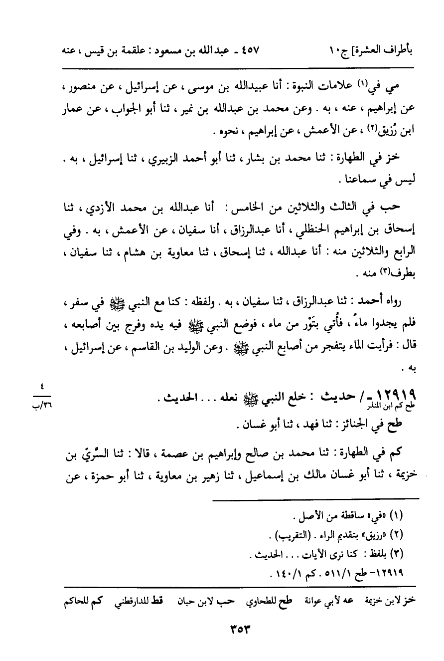 كم في الطهارة، ثنا محمد بن صالح، وإبراهيم بن عصمة، قالا: ثنا السري بن خزيمة، ثنا أبو غسان مالك بن إسماعيل، ثنا زهير بن معاوية، ثنا أبو حمزة، عن