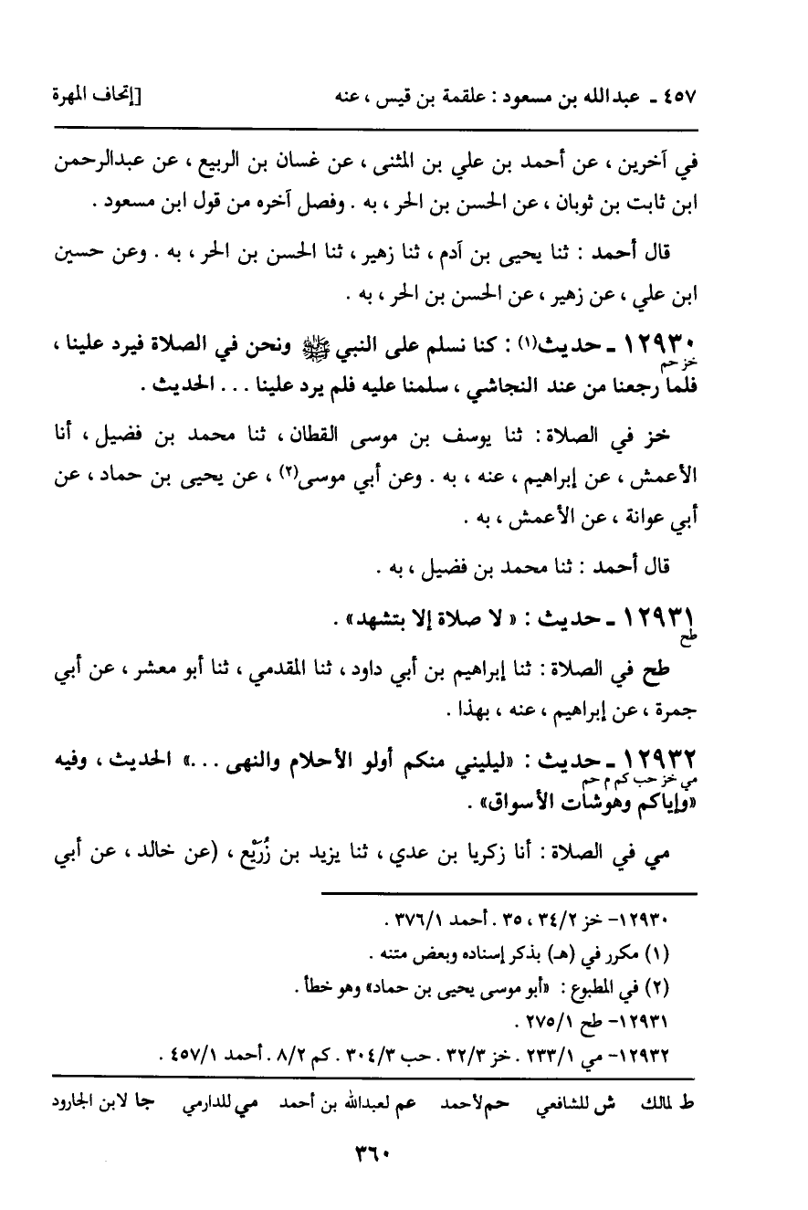 12930 - حديث (خز حم) : " كنا نسلم على النبي صلى الله عليه وسلم ونحن في الصلاة فيرد علينا، فلما رجعنا من عند النجاشي، سلمنا عليه فلم يرد علينا. . . " الحديث.