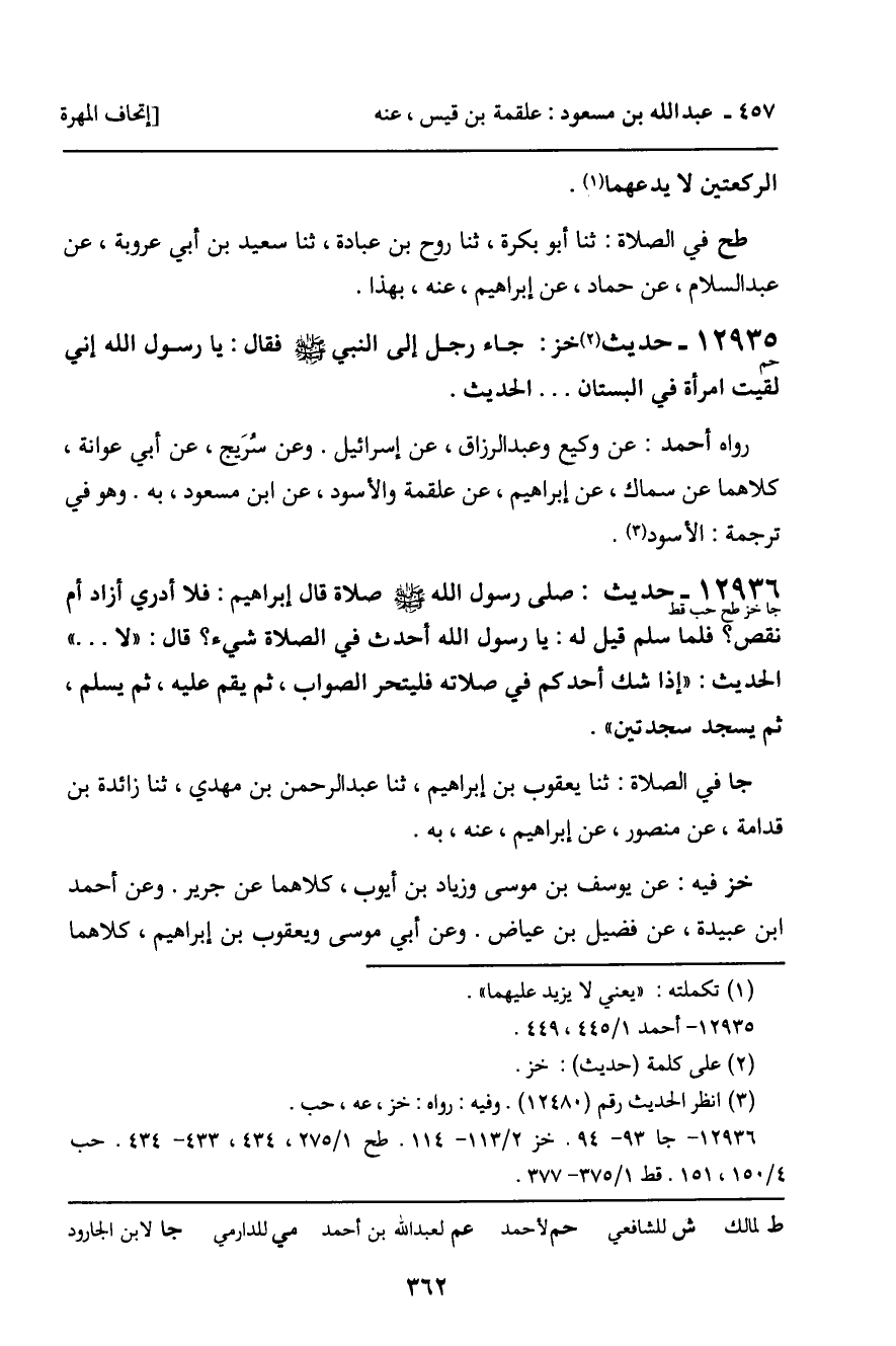 رواه أحمد: عن وكيع، وعبد الرزاق، عن إسرائيل. وعن سريج، عن أبي عوانة، كلاهما عن سماك، عن إبراهيم، عن علقمة، والأسود، عن ابن مسعود، به. وهو في ترجمة: الأسود.