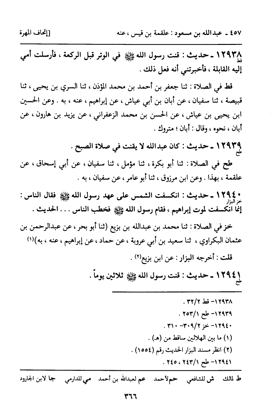 12939 - حديث (طح) : " كان عبد الله لا يقنت في صلاة الصبح ".