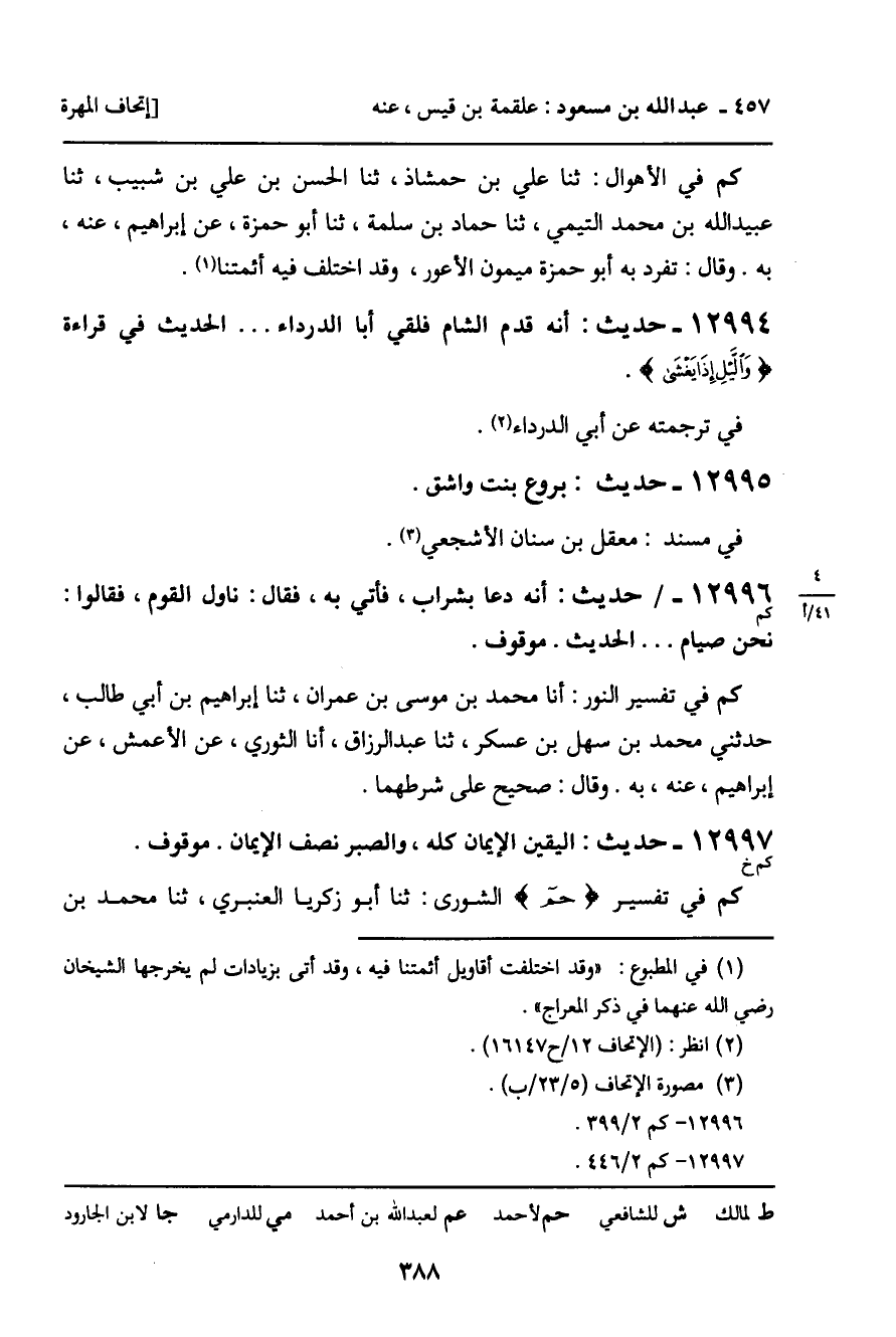 12997 - حديث (كم خ) : " اليقين الإيمان كله، والصبر نصف الإيمان ". موقوف.