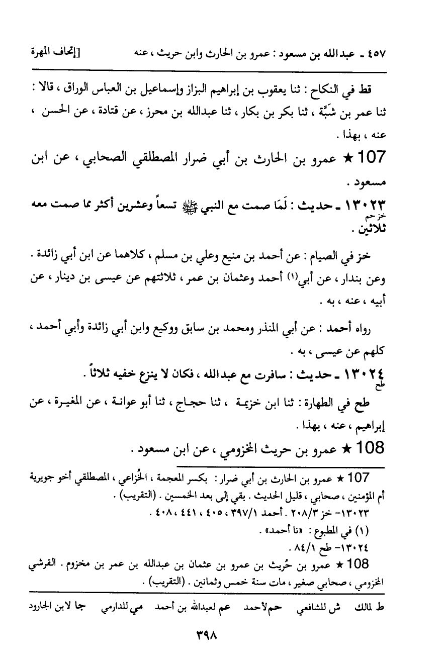 ـ عمرو بن الحارث بن أبي ضرار المصطلقي الصحابي، عن ابن مسعود.