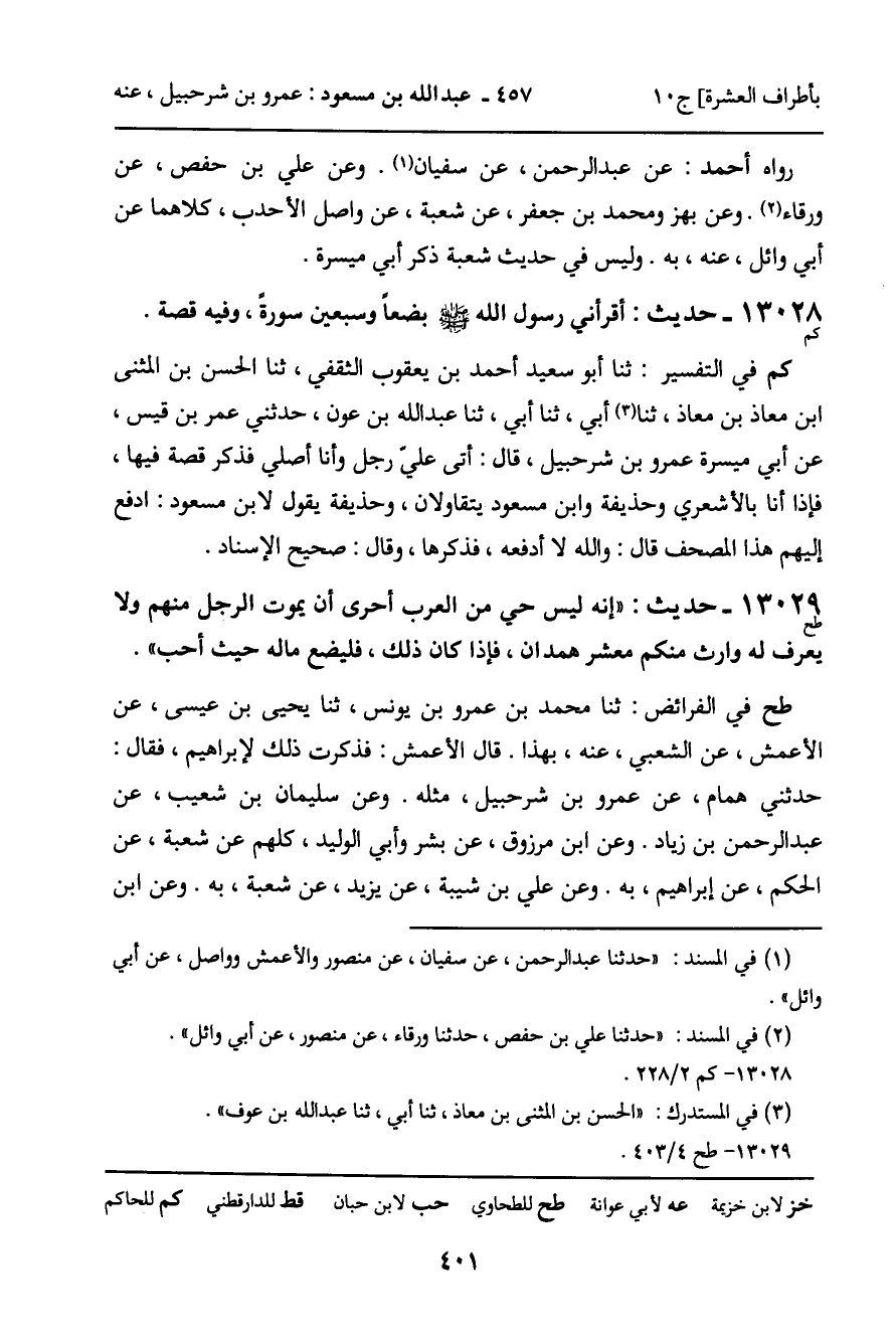طح في الفرائض: ثنا محمد بن عمرو بن يونس، ثنا يحيى بن عيسى، عن الأعمش، عن الشعبي، عنه، بهذا. قال الأعمش: فذكرت ذلك لإبراهيم، فقال: حدثني همام، عن عمرو بن شرحبيل، مثله. وعن سليمان بن شعيب، عن عبد الرحمن بن زياد. وعن ابن مرزوق، عن بشر، وأبي الوليد، كلهم عن شعبة، عن الحكم، عن إبراهيم، به. وعن علي بن شيبة، عن يزيد، عن شعبة، به. وعن ابن