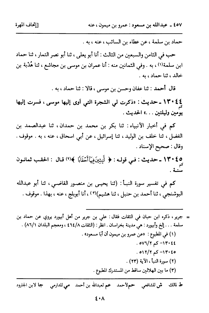 كم في تفسير سورة النبأ: ثنا يحيى بن منصور القاضي، ثنا أبو عبد الله البوشنجي، ثنا أحمد بن حنبل، ثنا هشيم، أنا أبوبلج، عنه، بهذا. موقوف.