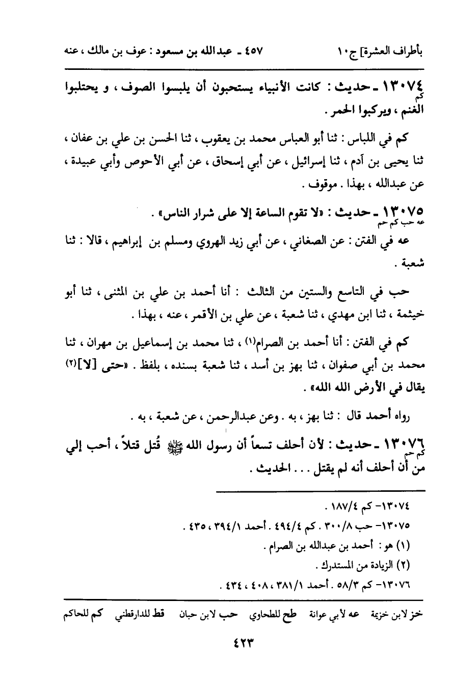 13075 - حديث (عه حب كم حم) : " لا تقوم الساعة إلا على شرار الناس ".