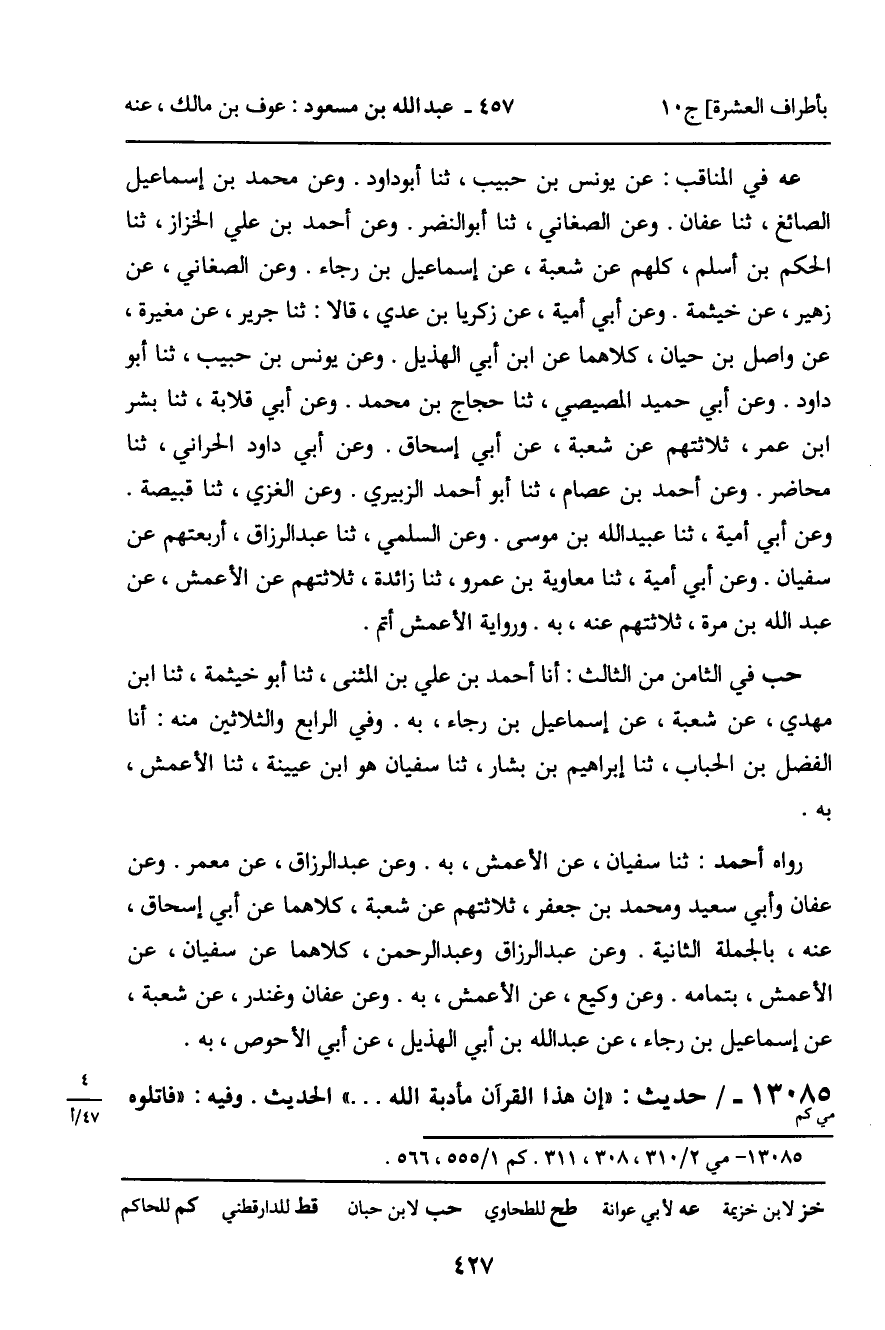 وعن عبد الله بن خالد بن حازم، ثنا محمد بن سلمة، ثنا أبو سنان، عن أبي إسحاق، عن أبي الأحوص بالحديث الأول. وعن قبيصة، أنا سفيان، عن عطاء بن السائب،، عن أبي الأحوص بالحديث الثاني. وعن سهل بن حماد، ثنا شعبة، عن عبد الملك بن ميسرة، عن أبي الأحوص، بطرف الحديث الأول.