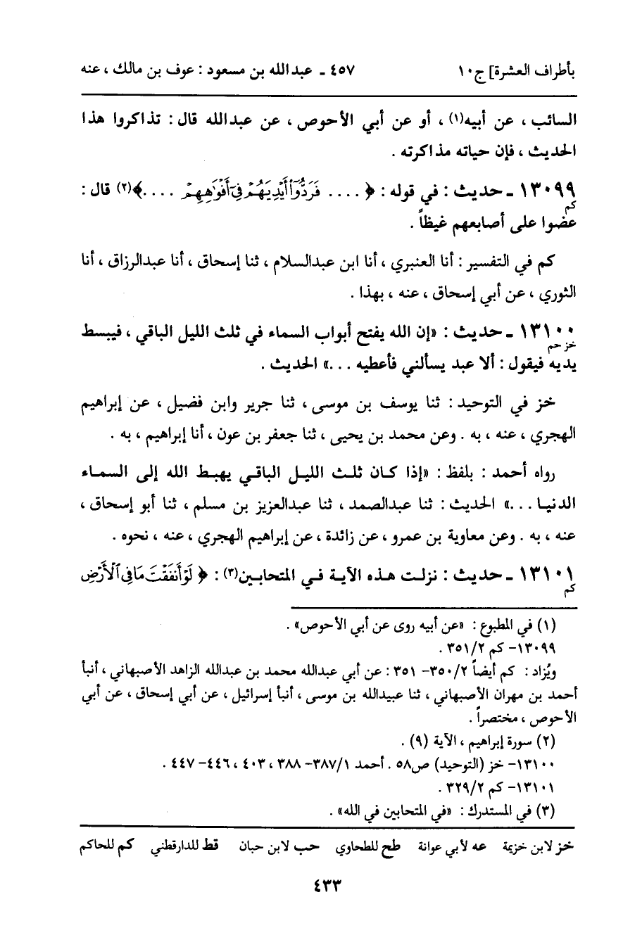 خز في التوحيد: ثنا يوسف بن موسى، ثنا جرير، وابن فضيل، عن إبراهيم الهجري، عنه، به. وعن محمد بن يحيى، ثنا جعفر بن عون، أنا إبراهيم، به.