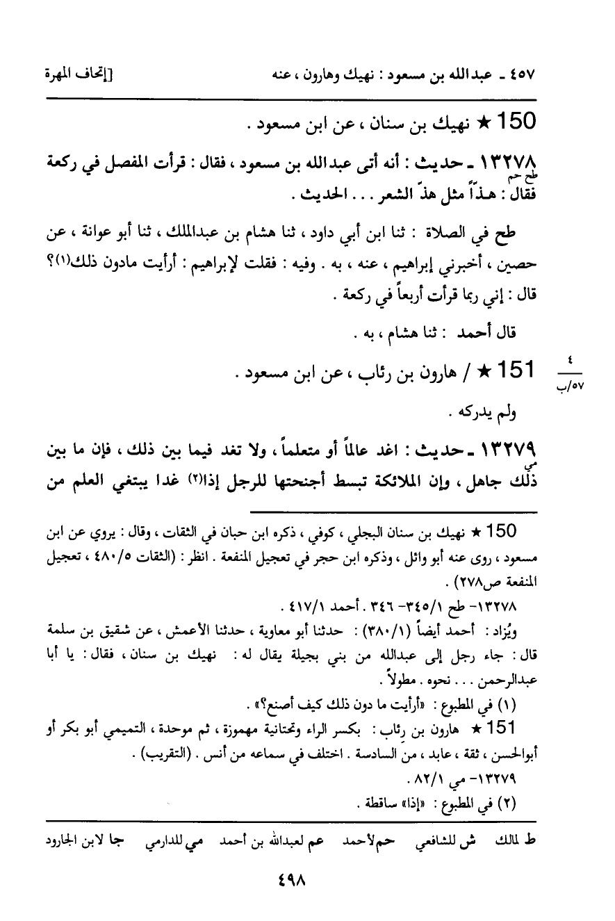 13279 - حديث (مي) : هارون بن رئاب، عن ابن مسعود اغد عالما أو متعلما، ولا تغد فيما بين ذلك فإن ما بين ذلك جاهل، وإن الملائكة تبسط أجنحتها للرجل إذا غدا يبتغي العلم من