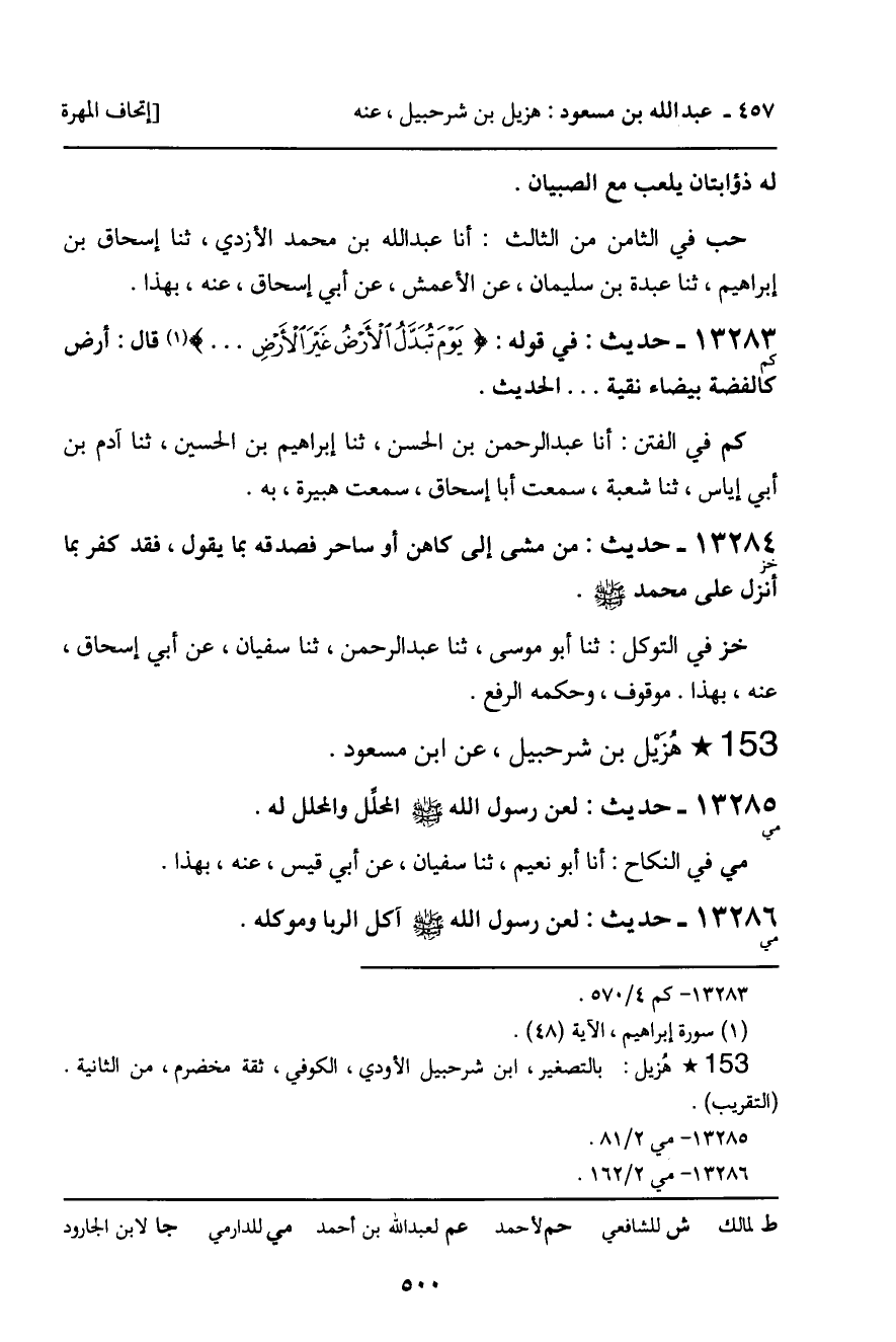 13285 - حديث (مي) : هزيل بن شرحبيل، عن ابن مسعود " لعن رسول الله صلى الله عليه وسلم المحلل والمحلل له ".