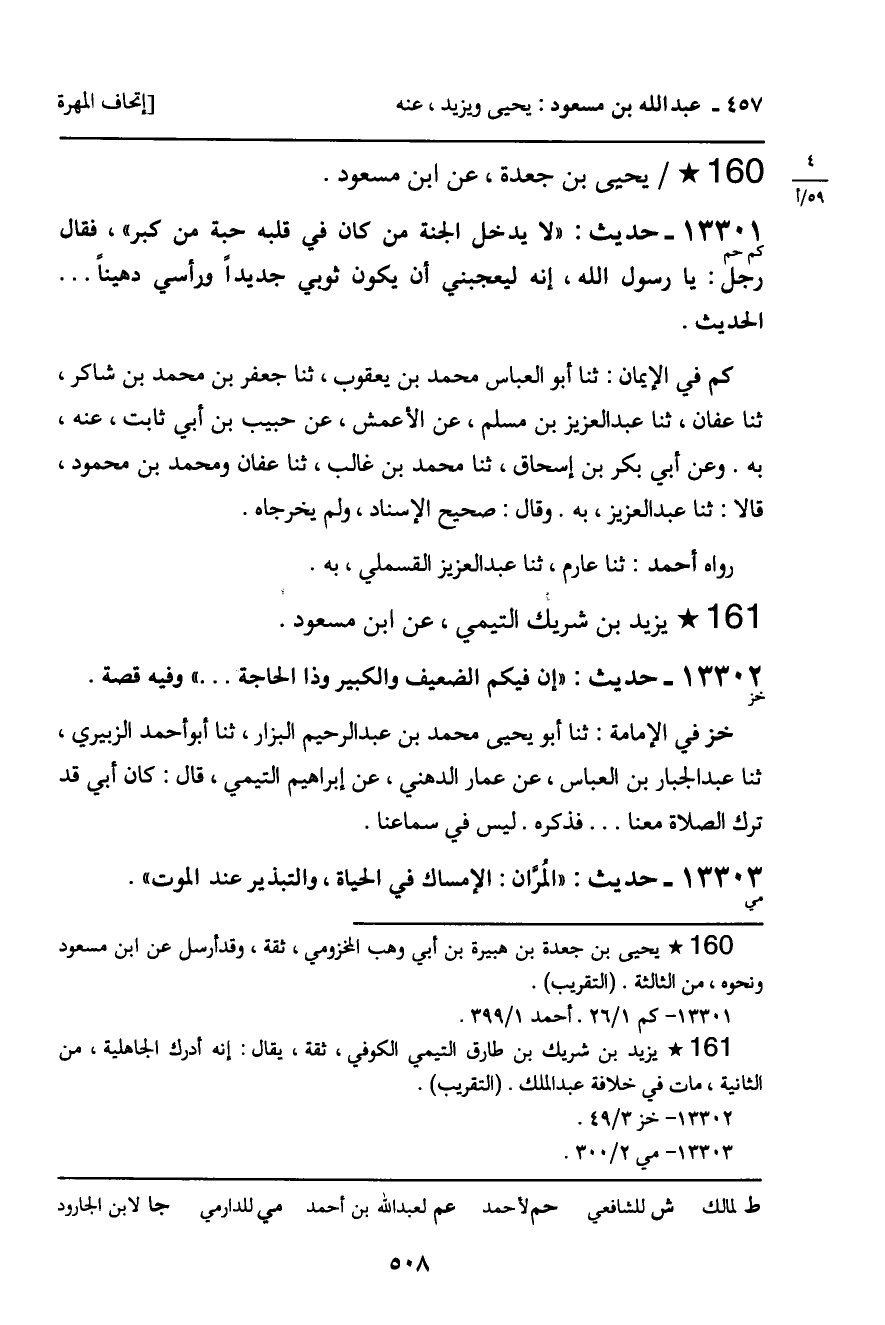 13302 - حديث (خز) : يزيد بن شريك التيمي، عن ابن مسعود " إن فيكم الضعيف والكبير وذا الحاجة. . . "