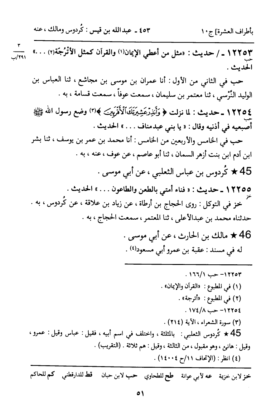12253 - حديث (حب) : " مثل من أعطي الإيمان والقرآن كمثل الأترجة. . . " الحديث.