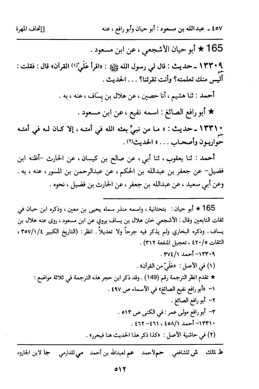 13310 - حديث (حم) : أبو رافع الصائغ: اسمه نفيع، عن ابن مسعود " ما من نبي بعثه الله في أمته، إلا كان له في أمته حواريون وأصحاب. . . . . " الحديث.