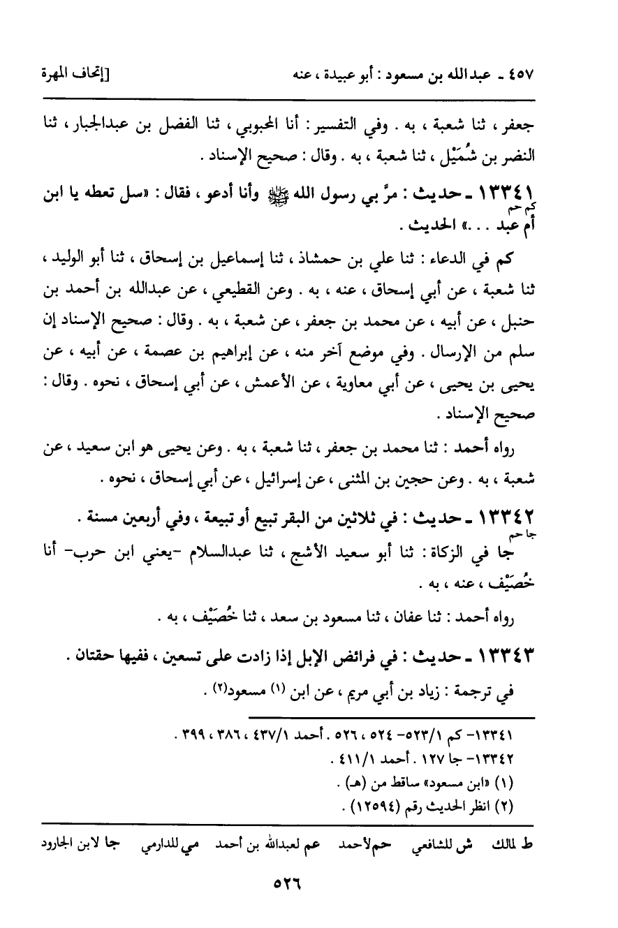 13342 - حديث (جا حم) : " في ثلاثين من البقر تبيع أو تبيعة، وفي أربعين مسنة ".