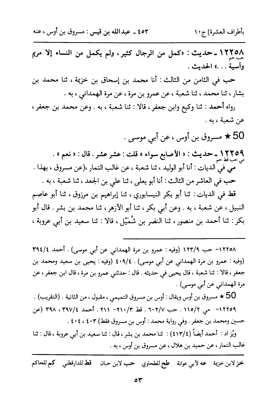 12258 - حديث (حب حم) : " كمل من الرجال كثير، ولم يكمل من النساء إلا مريم وأسية. . . " الحديث.