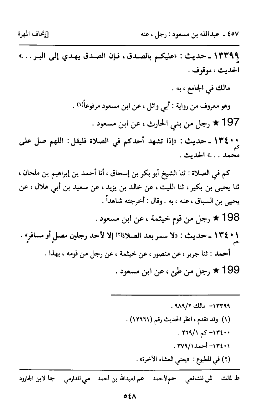 13400 - حديث (كم) : رجل من بني الحارث، عن ابن مسعود " إذا تشهد أحدكم في الصلاة فليقل: اللهم صل على محمد. . . " الحديث.