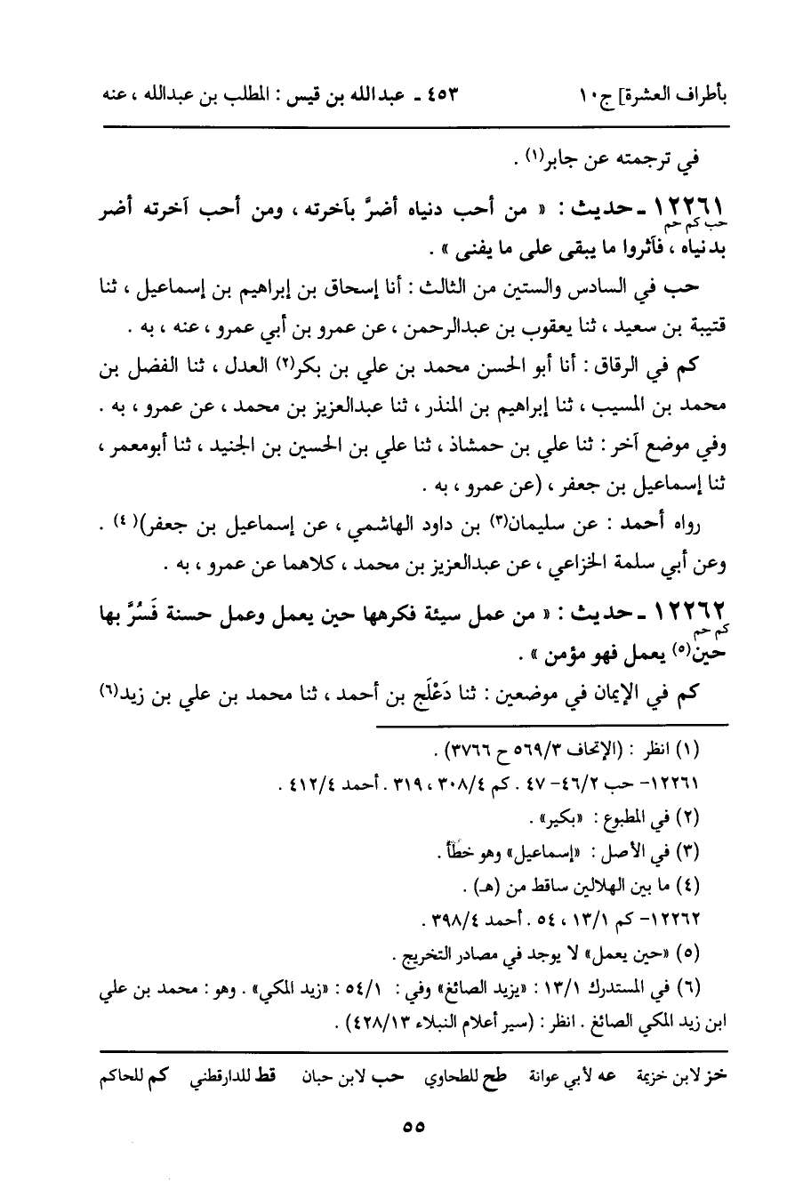 12262 - حديث (كم حم) : " من عمل سيئة فكرهما حين يعمل وعمل حسنة فسر بها حين يعمل فهو مؤمن ".