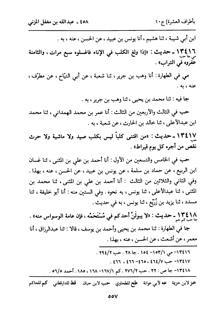 مي في الطهارة: أنا وهب بن جرير، ثنا شعبة، عن أبي التياح، عن مطرف، عنه، به.