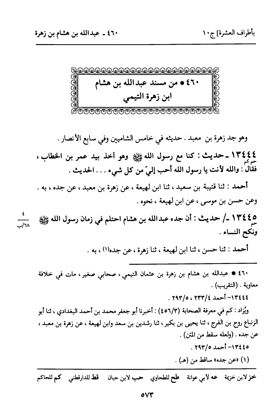 460 ـ مسند عبد الله بن هشام بن زهرة التيمي.