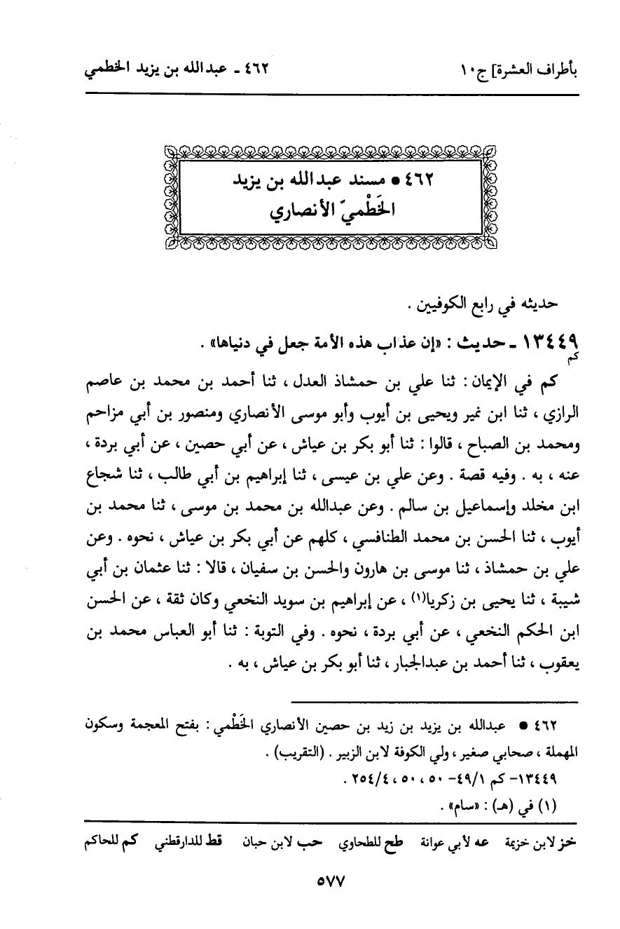 13449 - حديث (كم) : " إن عذاب هذه الأمة جعل في دنياها ".
