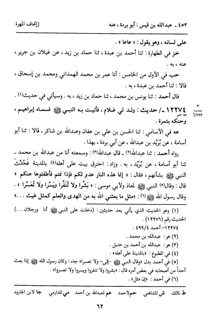 رواه أحمد: ثنا عبد الله قال عبد الله: وسمعته أنا من عبد الله بن محمد، ثنا أبو أسامة، عن بريد، به. وزاد: احترق بيت على أهله بالمدينة فحدث النبي صلى الله عليه وسلم بشأنهم، فقال: " إنما هذه النار عدو لكم فإذا نمتم فأطفئوها عنكم " قال: وقال النبي صلى الله عليه وسلم لمعاذ ولأبي موسى: " بشرا ولا تنفرا ويسرا ولا تعسرا. . . " وقال رسول الله صلى الله عليه وسلم: " مثل ما بعثني الله به من الهدى والعلم كمثل غيث. . . . "