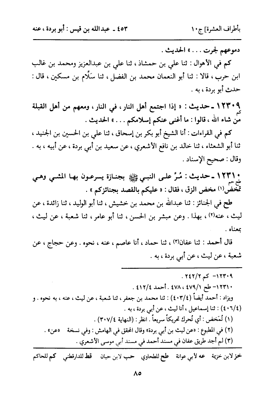 12310 - حديث (طح حم) : مر على النبي صلى الله عليه وسلم بجنازة بها المشي وهي تمخض مخض الزق، فقال: " عليكم بالقصد بجنائزكم ".