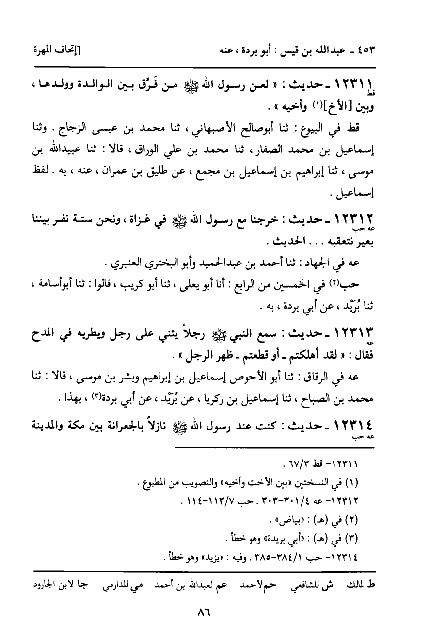 عه في الرقاق: ثنا أبو الأحوص إسماعيل بن إبراهيم، وبشر بن موسى، قالا: ثنا محمد بن الصباح، ثنا إسماعيل بن زكريا، عن بريد، عن أبي بردة، بهذا.