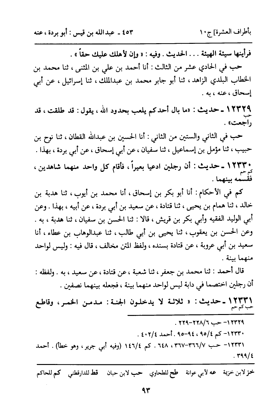 كم في الأحكام: أنا أبو بكر بن إسحاق، أنا محمد بن أيوب، ثنا هدبة بن خالد، ثنا همام بن يحيى، ثنا قتادة، عن سعيد بن أبي بردة، عن أبيه، بهذا. وعن أبي الوليد الفقيه، وأبي بكر بن قريش، قالا: ثنا الحسن بن سفيان، ثنا هدبة، به.