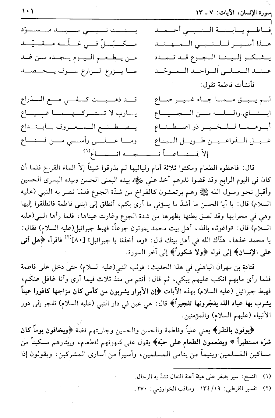 (2) تفسير القرطبي: 19/ 134. ومناقب الخوارزمي: 270.