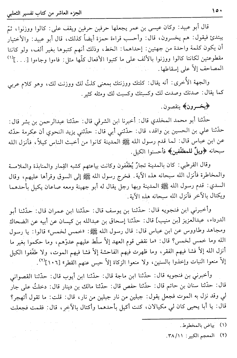 حدّثنا علي بن الحسين بن واقد، قال: حدّثني أبي قال: حدّثني يزيد النحوي أن عكرمة حدّثه عن ابن عباس قال: لما قدم رسول الله صلى الله عليه وسلم المدينة كانوا من أخبث الناس كيلا، فأنزل الله سبحانه وَيْلٌ لِلْمُطَفِّفِينَ فأحسنوا الكيل.
