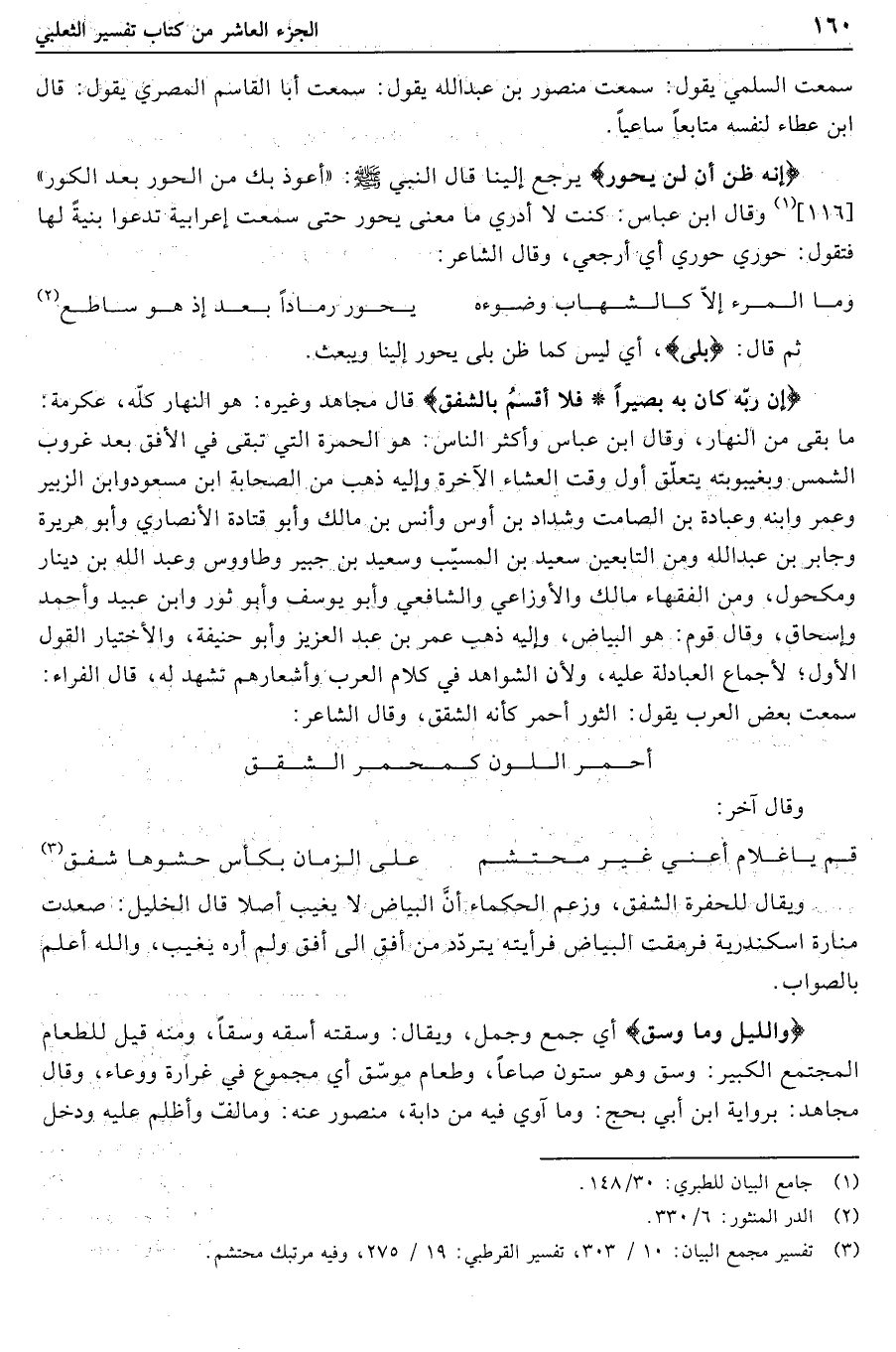 إِنَّ رَبَّهُ كانَ بِهِ بَصِيراً فَلا أُقْسِمُ بِالشَّفَقِ قال مجاهد وغيره: هو النهار كلّه، عكرمة: