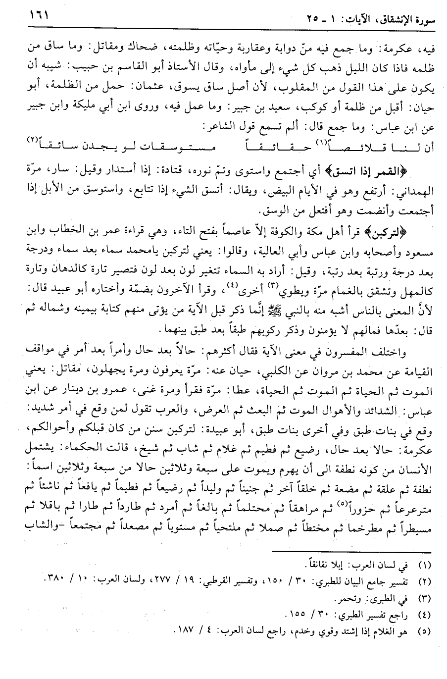 (2) تفسير جامع البيان للطبري: 30/ 150، وتفسير القرطبي: 19/ 277، ولسان العرب: 10/ 380.