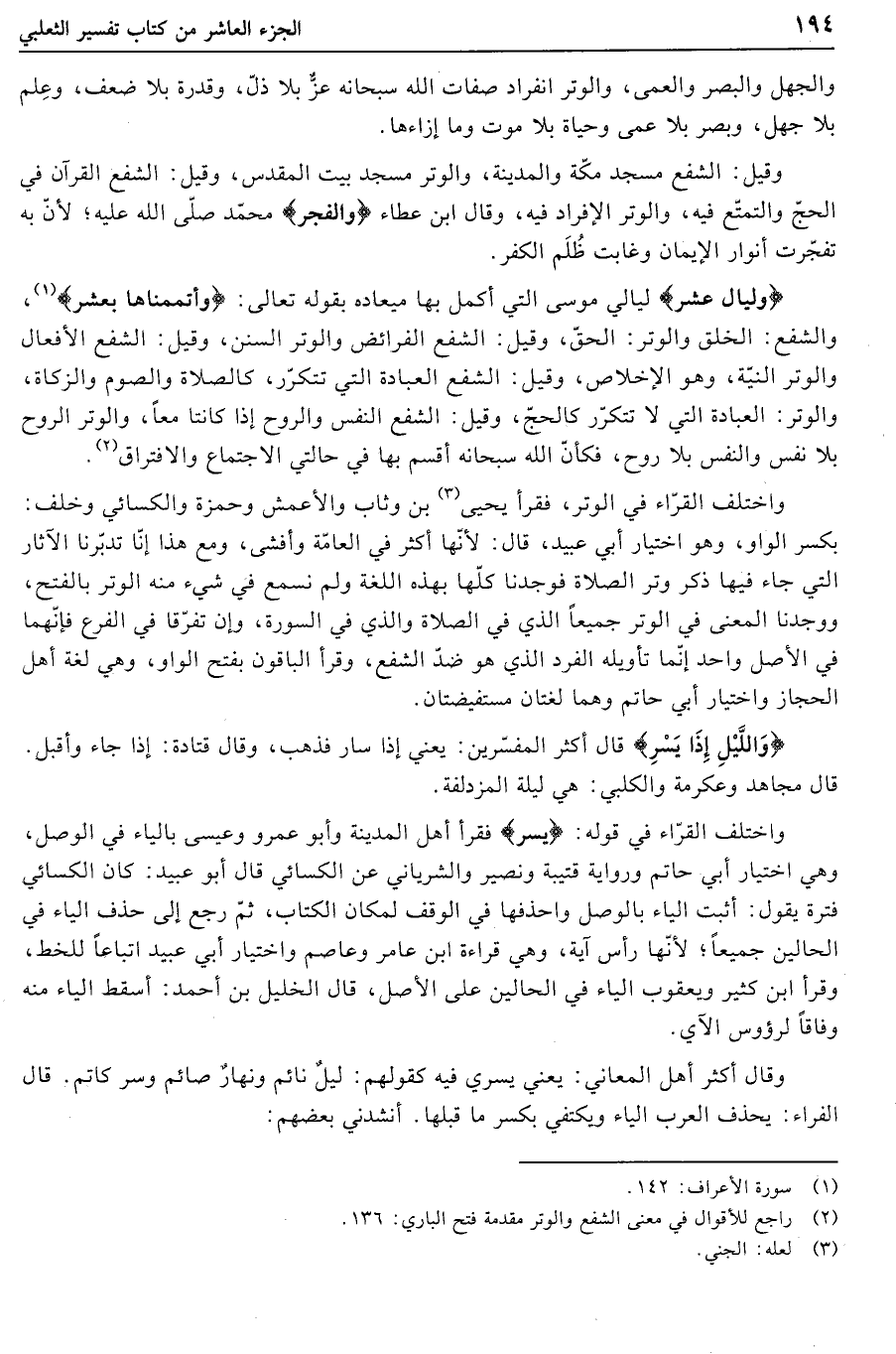 (2) راجع للأقوال في معنى الشفع والوتر مقدمة فتح الباري: 136.