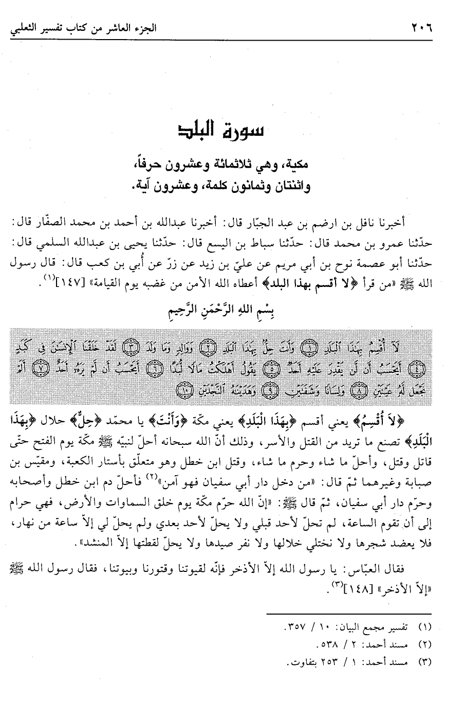 لا أُقْسِمُ بِهذَا الْبَلَدِ (1) وَأَنْتَ حِلٌّ بِهذَا الْبَلَدِ (2) وَوالِدٍ وَما وَلَدَ (3) لَقَدْ خَلَقْنَا الْإِنْسانَ فِي كَبَدٍ (4)