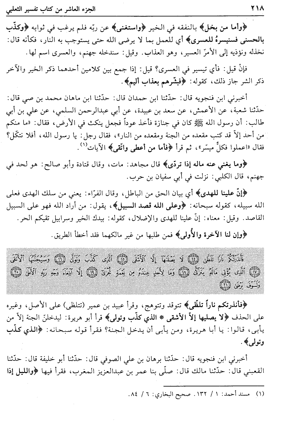 فَأَنْذَرْتُكُمْ ناراً تَلَظَّى (14) لا يَصْلاها إِلاَّ الْأَشْقَى (15) الَّذِي كَذَّبَ وَتَوَلَّى (16) وَسَيُجَنَّبُهَا الْأَتْقَى (17) الَّذِي يُؤْتِي مالَهُ يَتَزَكَّى (18)