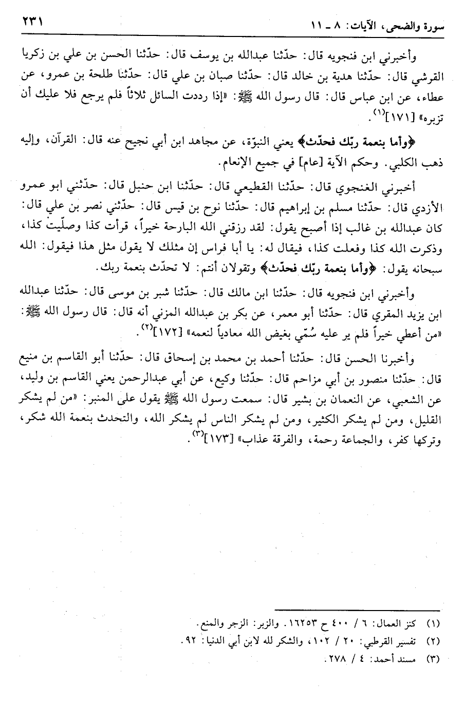 (2) تفسير القرطبي: 20/ 102، والشكر لله لابن أبي الدنيا: 92.