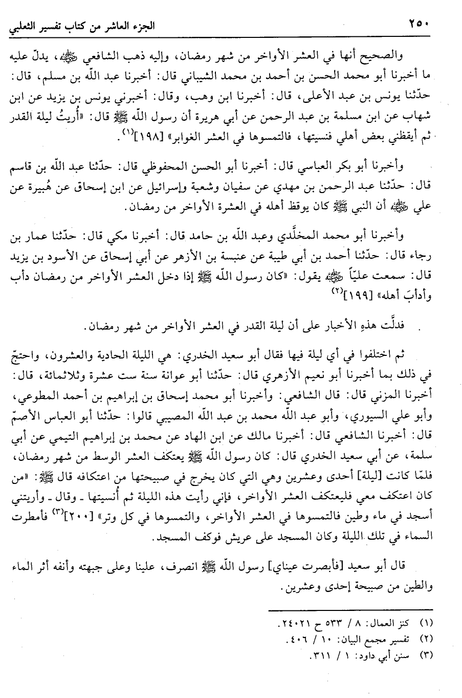 قال أبو سعيد [فأبصرت عيناي] رسول الله صلى الله عليه وسلم انصرف علينا وعلى جبهته وأنفه أثر الماء والطين من صبيحة إحدى وعشرين.