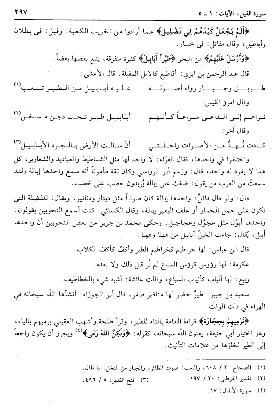 كادت تهدّ من الأصوات راحلتي ... أن سالت الأرض بالجرد الأبابيل «3»