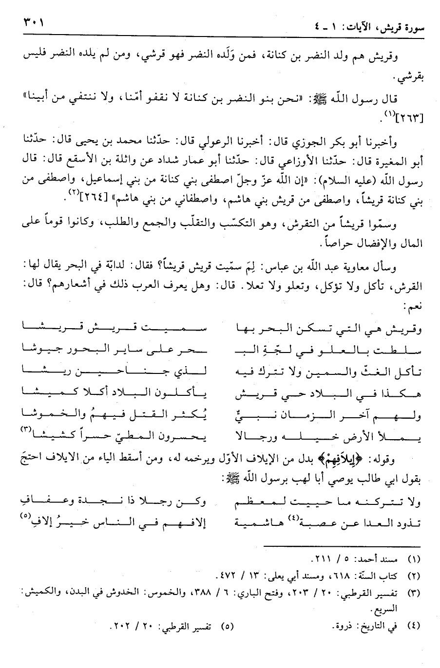 قال رسول الله صلى الله عليه وسلم: «نحن بنو النضر بن كنانة لا نقفو أمّنا، ولا ننتفي من أبينا» [263] «1» .