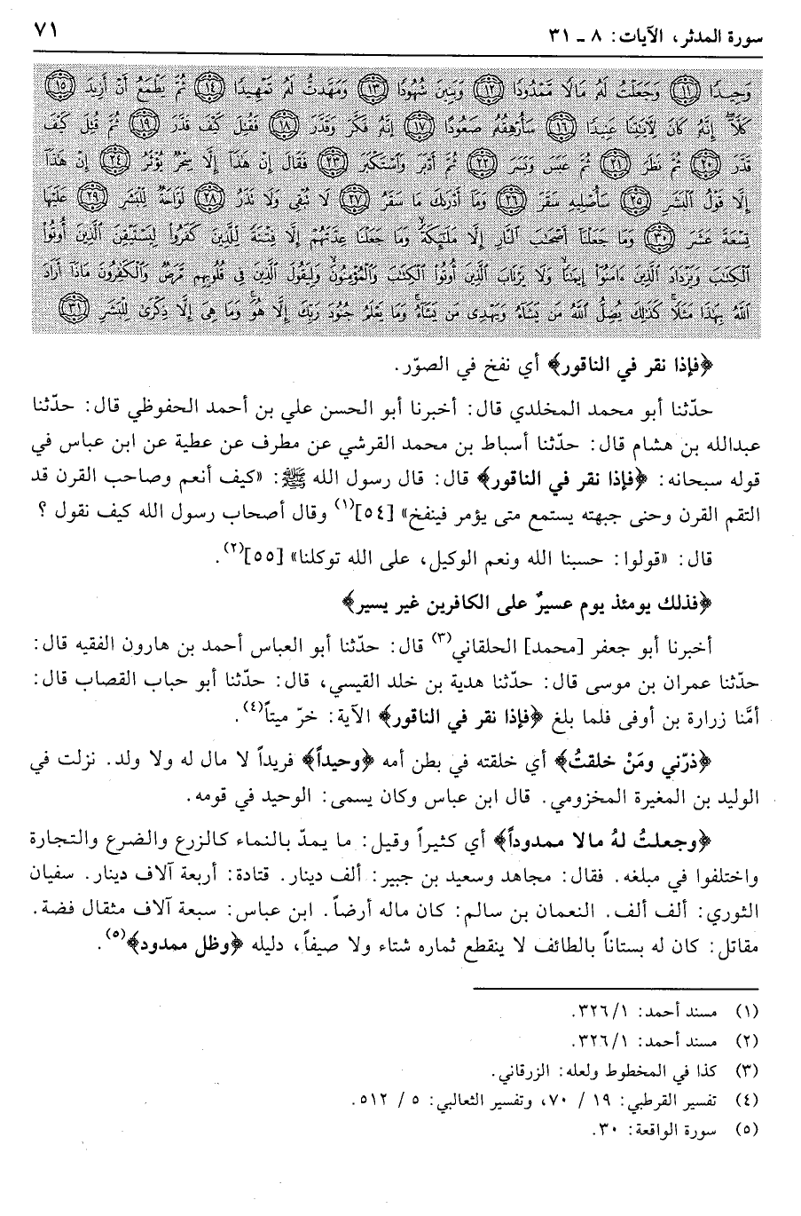 (4) تفسير القرطبي: 19/ 70، وتفسير الثعالبي: 5/ 512.