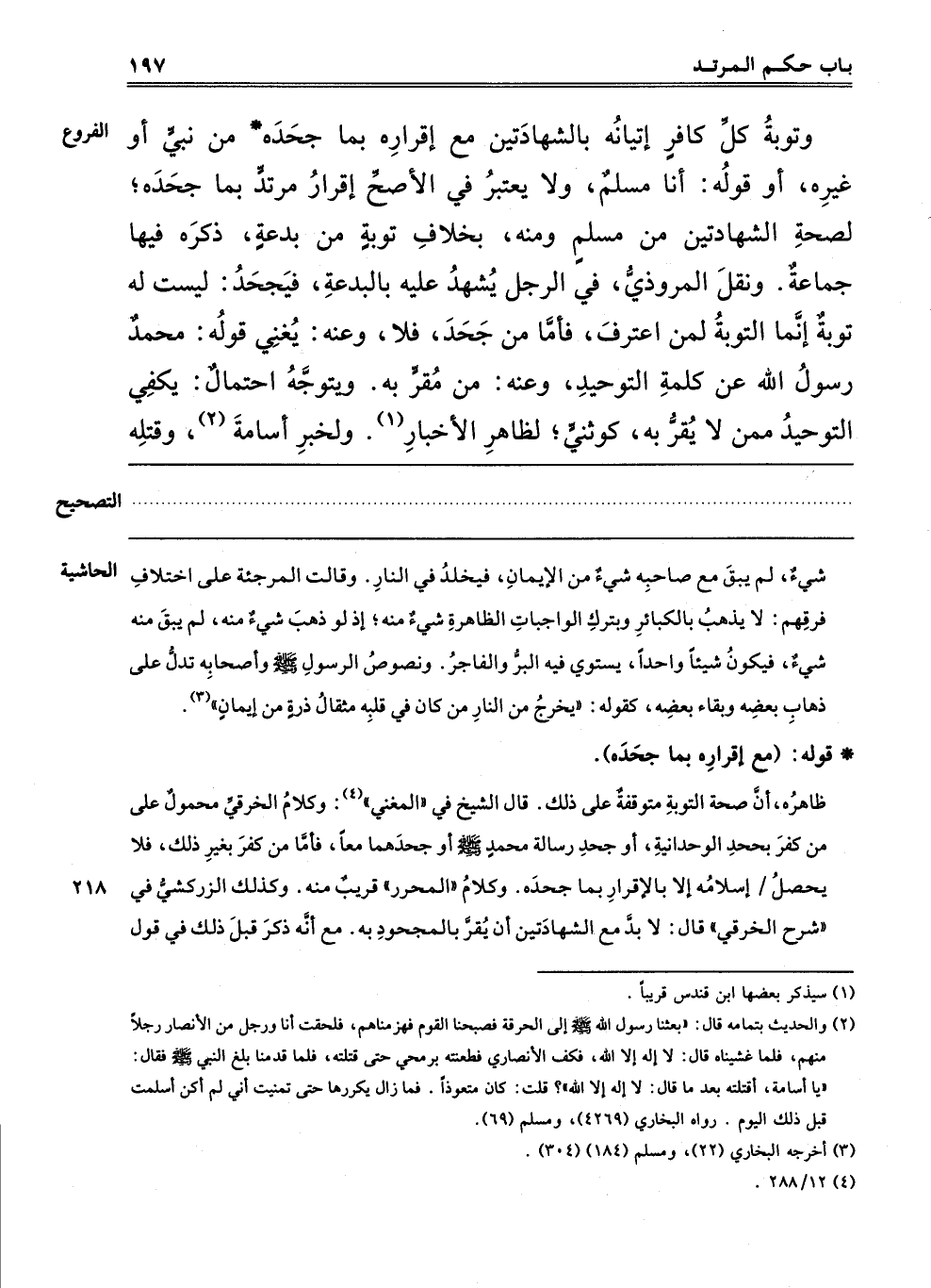 2 والحديث بتمامه قال: بعثنا رَسُولِ اللَّهِ صَلَّى اللَّهُ عَلَيْهِ وَسَلَّمَ إلَى الحرقة القوم فهزمناهم فلحقت أنا ورجل من الأنصار رجلا منهم فلما غشيناه قال: لا إله إلا الله فكف الأنصاري فطعنته برمحي حتى قتلته فلما قدمنا بلغ النَّبِيِّ صَلَّى اللَّهُ عَلَيْهِ وَسَلَّمَ فَقَالَ: "يَا أسامة أقتلته بعد ما قال: لا إله إلا الله"؟ قلت كان متعوذا فما زال يكررها حتى تمنيت أني لم أكن أسلمت قبل ذلك اليوم رواه البخاري "4269" ومسلم "69".