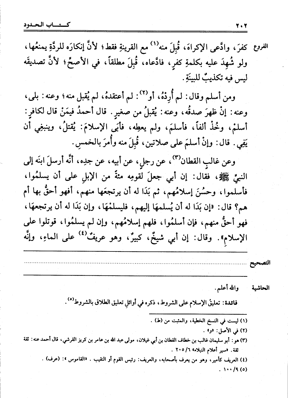 وَعَنْ غَالِبٍ الْقَطَّانِ3 عَنْ رَجُلٍ عَنْ أَبِيهِ عَنْ جَدِّهِ أَنَّهُ أَرْسَلَ ابْنَهُ إلَى النَّبِيِّ صَلَّى اللَّهُ عَلَيْهِ وَسَلَّمَ فَقَالَ: إنَّ أَبِي جَعَلَ لِقَوْمِهِ مِائَةً مِنْ الْإِبِلِ عَلَى أَنْ يُسْلِمُوا, فَأَسْلَمُوا وَحَسُنَ إسْلَامُهُمْ, ثُمَّ بَدَا لَهُ أَنْ يَرْتَجِعَهَا مِنْهُمْ, أَفَهُوَ أَحَقُّ بِهَا أَمْ هُمْ؟ قَالَ إنْ بَدَا لَهُ أَنْ يُسْلِمَهَا إلَيْهِمْ فَلْيُسْلِمْهَا, "وَإِنْ بَدَا لَهُ أَنْ يَرْتَجِعَهَا فَهُوَ أَحَقُّ بِهَا مِنْهُمْ, فَإِنْ أَسْلَمُوا فَلَهُمْ إسْلَامُهُمْ وَإِنْ لَمْ يُسْلِمُوا قُوتِلُوا عَلَى الْإِسْلَامِ" وَقَالَ: إنَّ أَبِي شَيْخٌ كَبِيرٌ, وَهُوَ عَرِيفٌ4 عَلَى الْمَاءِ, وإنه
