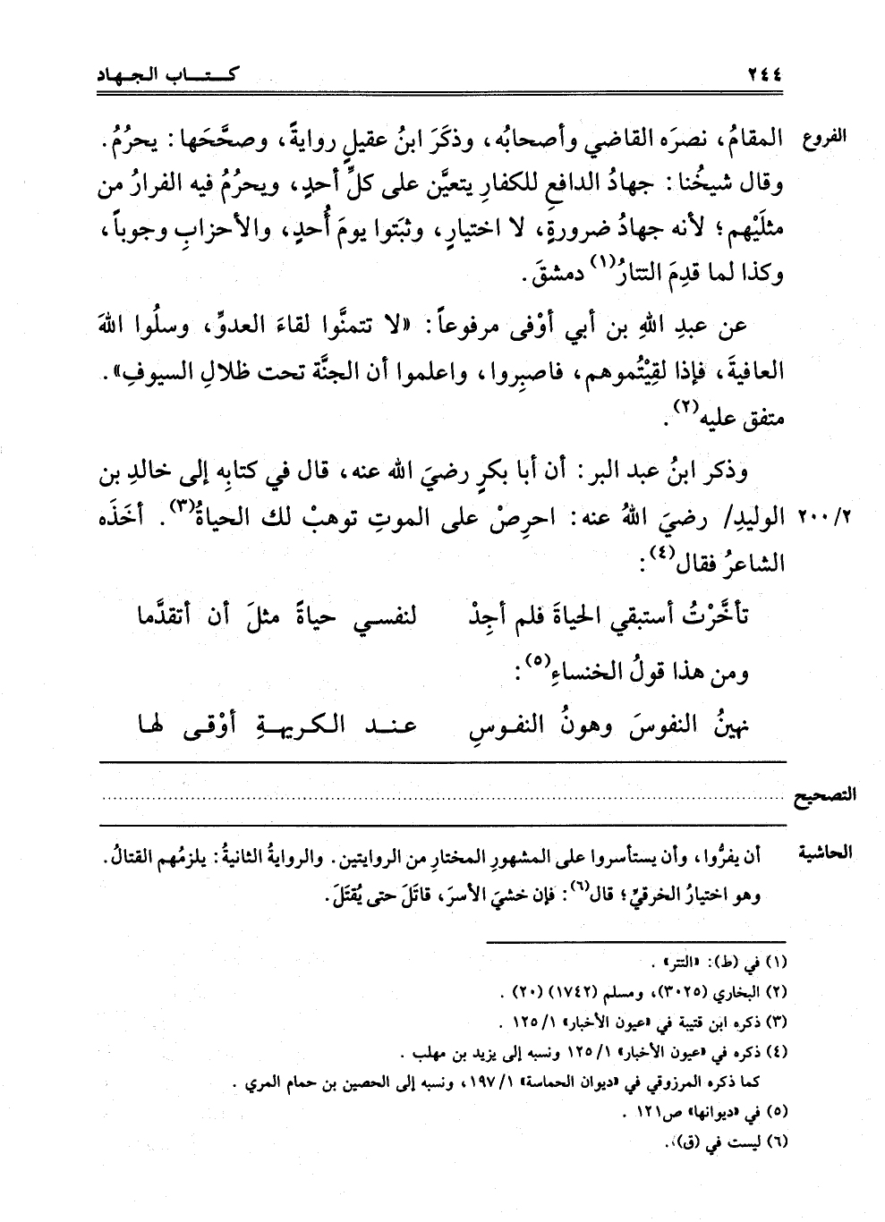 وَذَكَرَ ابْنُ عَبْدِ الْبَرِّ أَنَّ أَبَا بَكْرٍ الصِّدِّيقَ رَضِيَ اللَّهُ عَنْهُ قَالَ فِي كِتَابِهِ إلَى خَالِدِ بْنِ الْوَلِيدِ رَضِيَ اللَّهُ عَنْهُ: احْرِصْ عَلَى الْمَوْتِ تُوهَبُ لَك الْحَيَاةُ3. وَأَخَذَهُ الشَّاعِرُ فَقَالَ4: